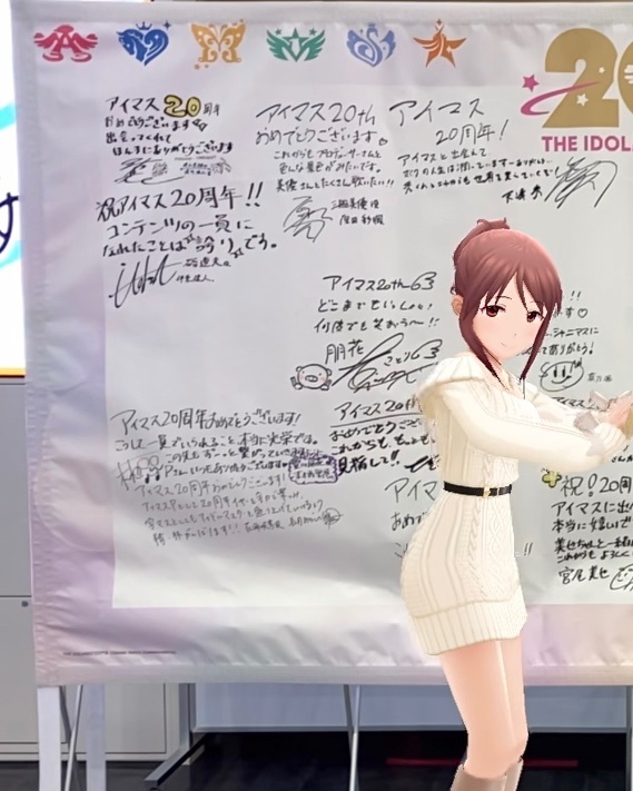 皆さんのサインとメッセージ~。 もしいつかまたエキスポやった際は、びっしり埋まった状態で展示されるのかなー。 #アイに行きマス成田 pic.x.com/nHqsaJwE9e