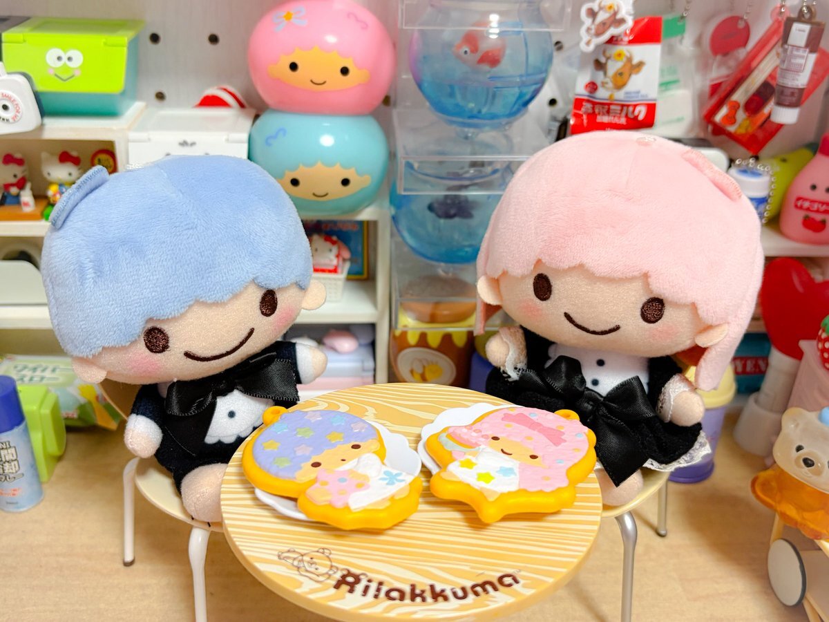 3時のおやつ🍪 11月9日 #アイシングクッキーの日  仲良くアイシングクッキーを食べたキキりんララりん🩵🩷 #ぬい撮り #キキララ pic.x.com/OWI4nttPEW
