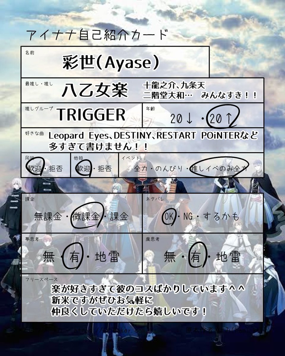 #アイナナレイヤーさんと繋がりたい 中の人になることを目指しつつオタクの活動もいっぱいしている双子ちゃん173cm推しデス!no課金勢ただしグッズはわりと課金勢 ちなみに好きな声優さん(憧れの)は陸の中の人デス! よろしくお願いいたしますm(_ _)m #アイナナ好きさんと繋がりたい pic.x.com/BxQGA5YqwX