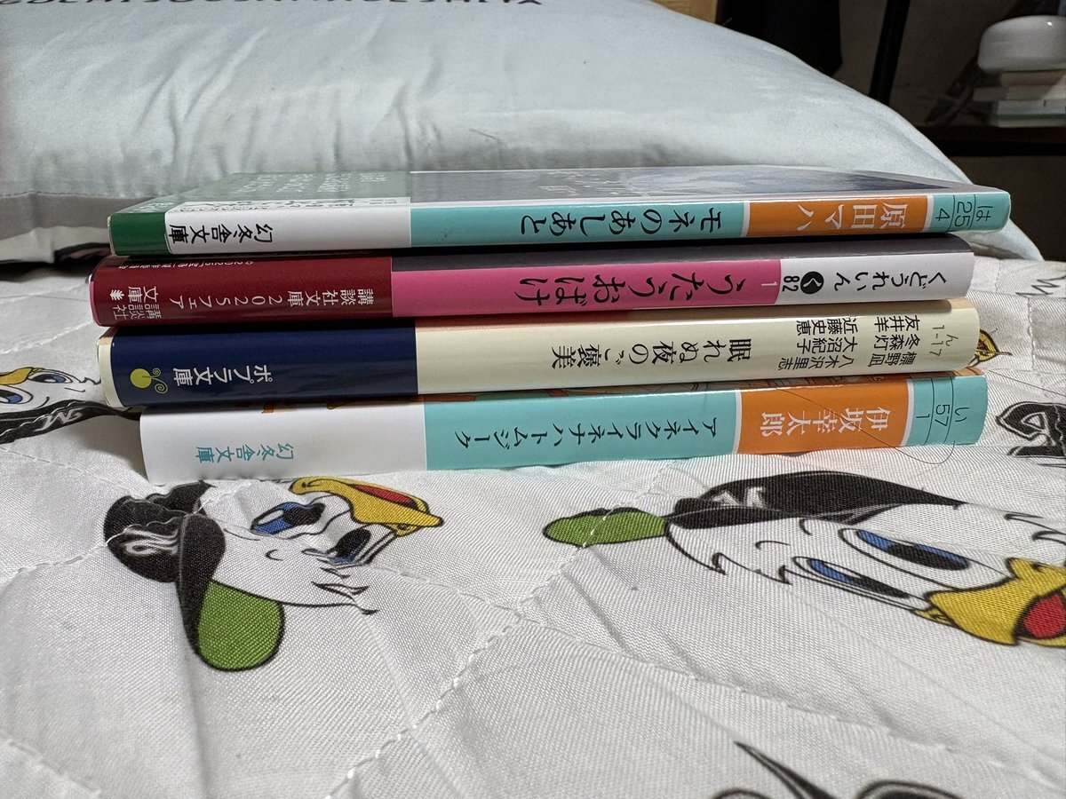 今日は出張🚅 長距離移動はいつも大好きな伊坂幸太郎さんの作品をお供に👜 今日は「アイネクライネナハトムジーク」を再読☺️ 前回は新幹線だけに「マリアビートル」再読して殺し屋シリーズにさらにハマったのでした 移動中も貴重なひとり時間です✨ #伊坂幸太郎 #アイネクライネナハトムジーク pic.x.com/j0r4zX9sVd