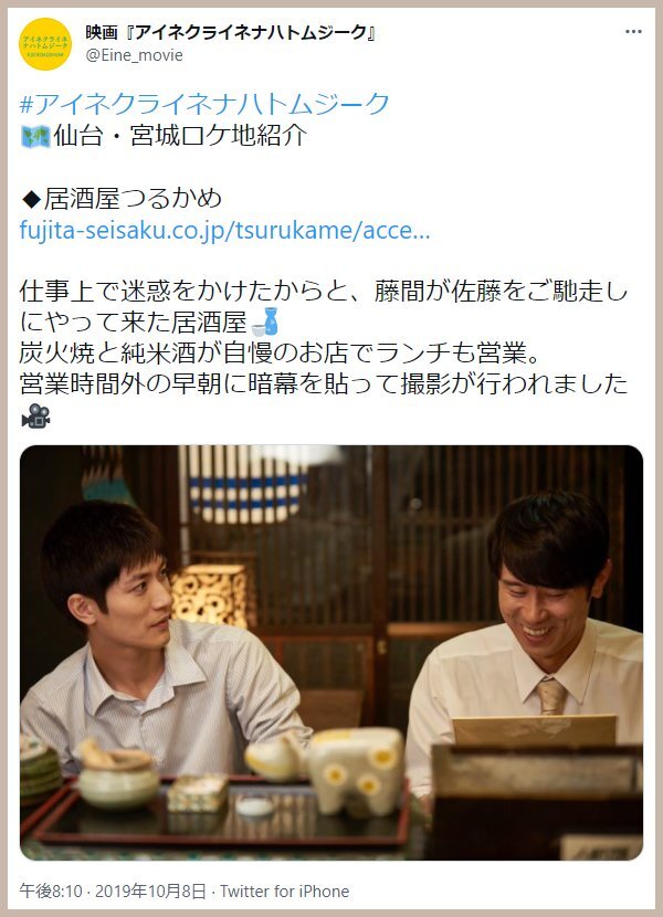 「アイネクライネナハトムジーク」の撮影ロケ地「居酒屋つるかめ」 💐三浦春馬君が足を運んだ人気店🏮🍶 仙台市青葉区本町2-9-2エンドビル1F 📞022-225-2361 広瀬通駅徒歩1分 #三浦春馬 #アイネクライネナハトムジーク #居酒屋つるかめ pic.x.com/4HUrh0HQjj