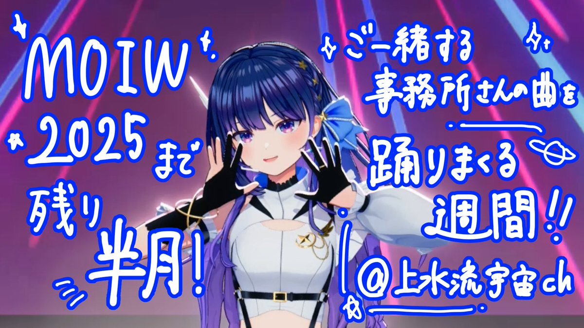 📢⋆お知らせ ⋆✦ #MOIW2025 まで残り半月! 当日に向けて更に盛り上げたい…! ということで本日から… \ 怒涛の!/ 【 #アイマス 楽曲 踊りまくる週間 】 をしちゃいます!!✨️ 過去に踊ったものから最近の曲まで🎧 上水流宇宙chにて ''毎日18時''投稿! お楽しみに🪐✨️ #ヴイアラ pic.x.com/D67e7WRatQ
