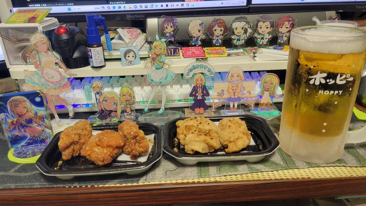 秋のりんご祭、終了 料理食べながらゲームしたり、円盤見てコールしたり、美希の誕生日祝いでおにぎりケーキ(きちんと食べれるもの)作ったり楽しかったです!人狼とコップは作りました 後そらちゃんがりんご概念ぬいを作ってくれたので私のアイコンになります🍎 #アイマスP呑兵衛部 #アイマスP呑兵衛部 pic.x.com/r1vqSMwjZm