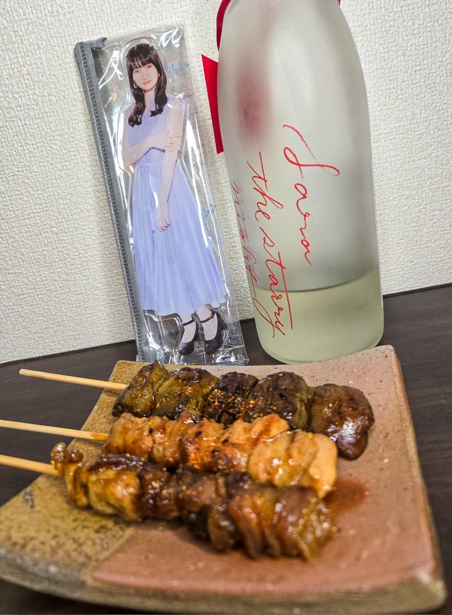 明日は休日出勤~勤労できることに感謝して働くわよ_( ┐ノε:)ノ 今夜は綾川町、鳥市で買った焼き鳥(親鶏、若鶏、肝 いずれもタレ)を備前焼の皿に盛り付け、軽く七味を振って頂く。 🍶は埼玉、北西酒造の彩來 the starry night Altair #アイマスP呑兵衛部 pic.x.com/ai92Y4yam5