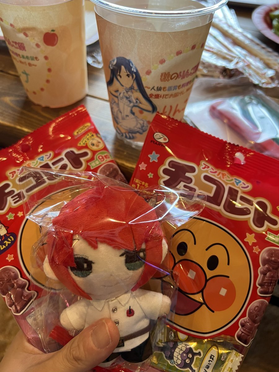 秋のりんご祭、終了 料理食べながらゲームしたり、円盤見てコールしたり、美希の誕生日祝いでおにぎりケーキ(きちんと食べれるもの)作ったり楽しかったです!人狼とコップは作りました 後そらちゃんがりんご概念ぬいを作ってくれたので私のアイコンになります🍎 #アイマスP呑兵衛部 #アイマスP呑兵衛部