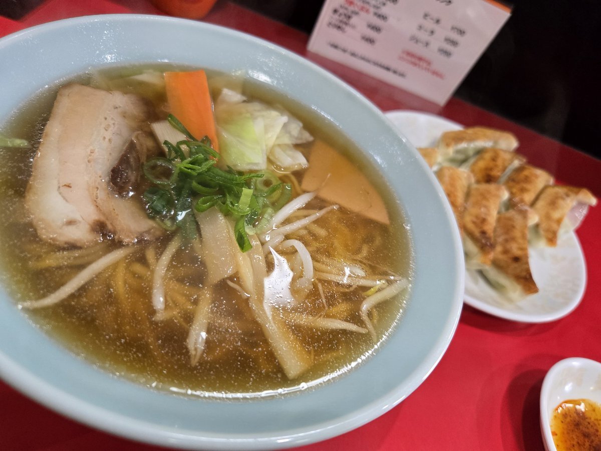 丸亀市、きらく 「ええぶん」+ギョーザ ラーメン「ええぶん」は、いまのご時世に驚きの500円。具がモヤシ、ネギのみの「うまいぶん」は400円! レトロな優しい味わいで、時おり無性に食べたくなる感じ。ギョーザは表面揚げ焼きで食感も良し #アイマスP食いしん坊隊 pic.x.com/uTOiDCmyH9