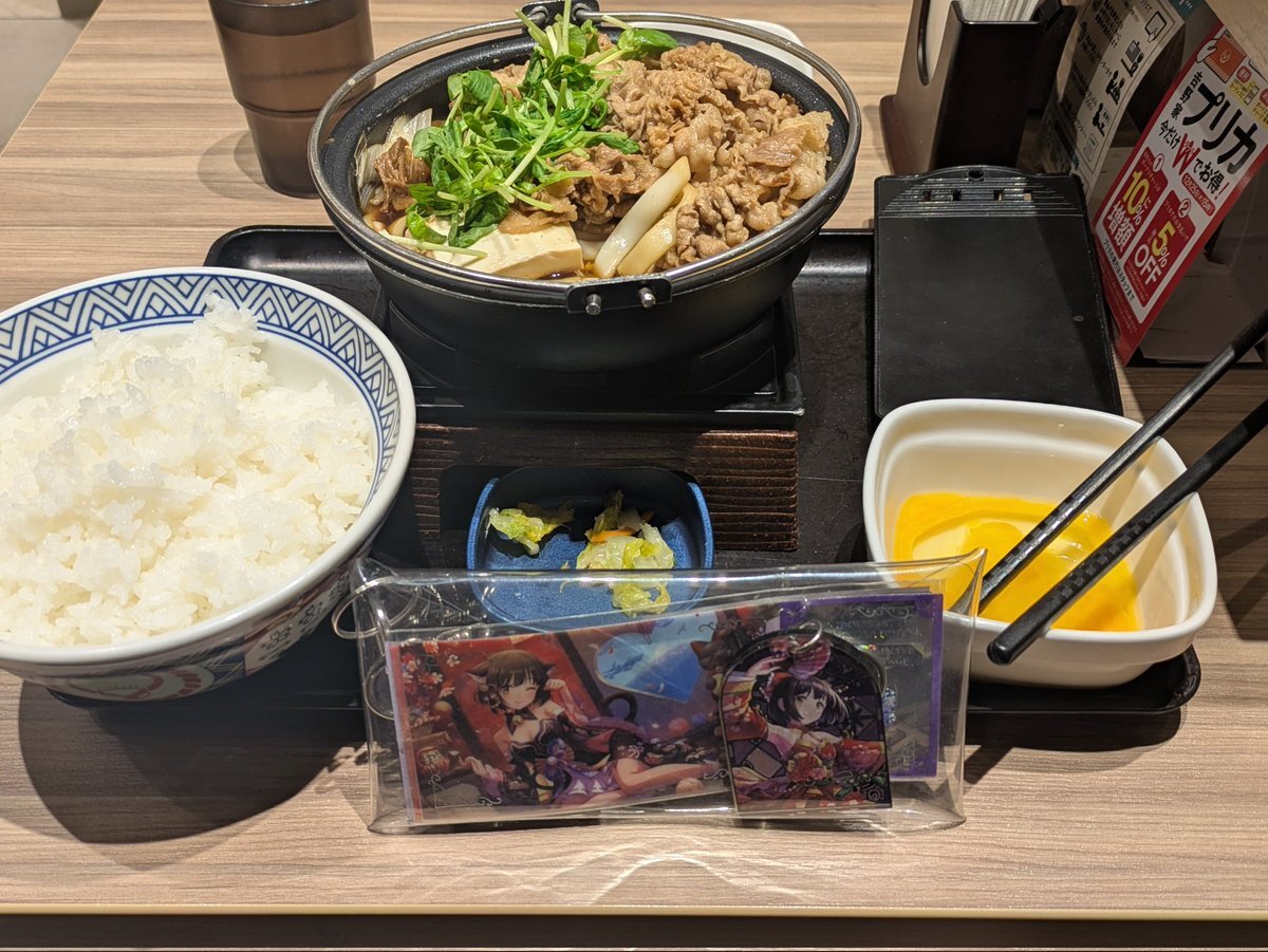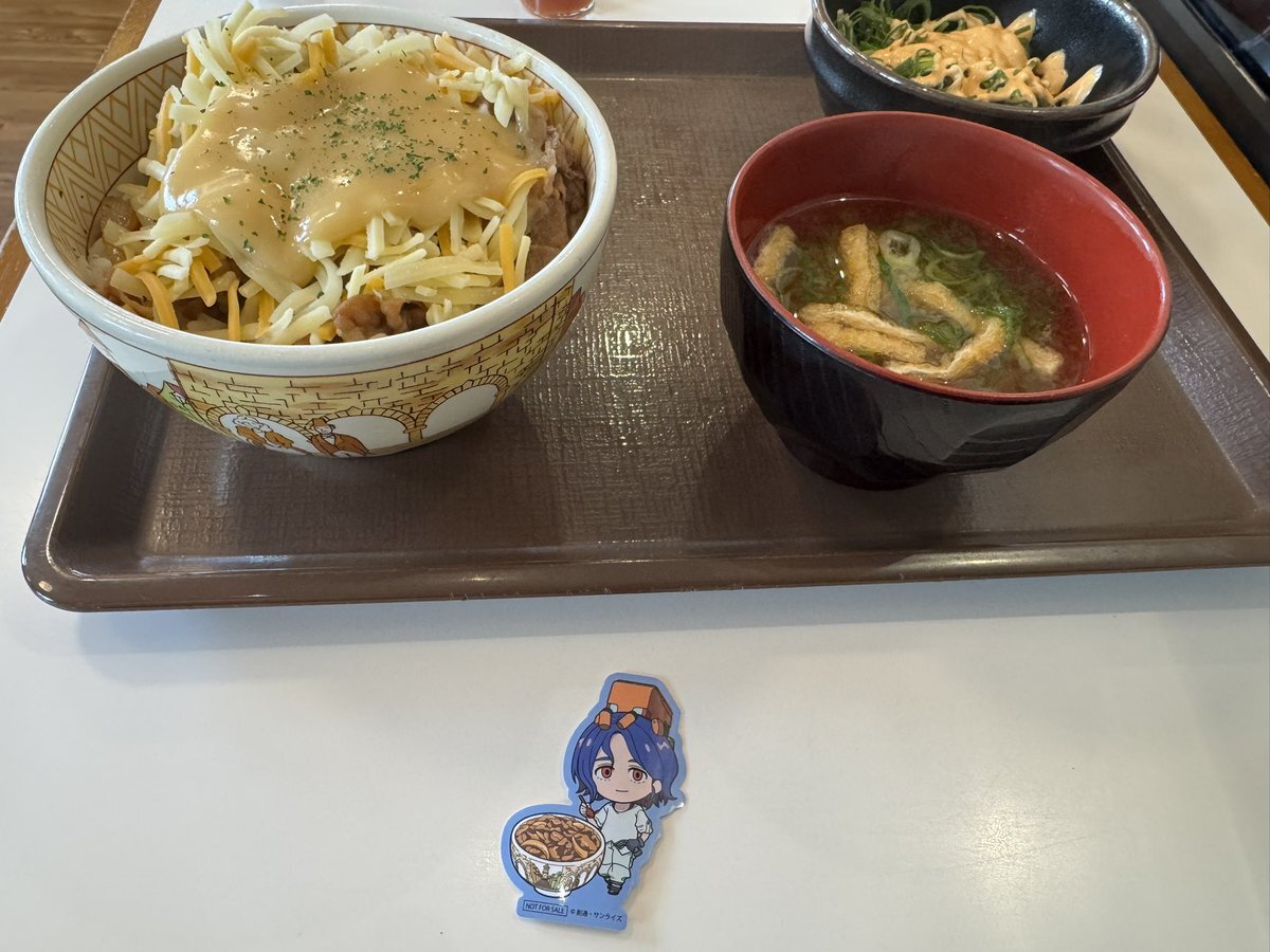 #アイマスP食いしん坊隊 すき家ジークアクスコラボ マチュにならってチーズトッピング😋 シュウジやった コレ自力で集めるより オクとかで買った方がいいな 金銭的な問題より 飽きる🥹 pic.x.com/AX41hKjSvP