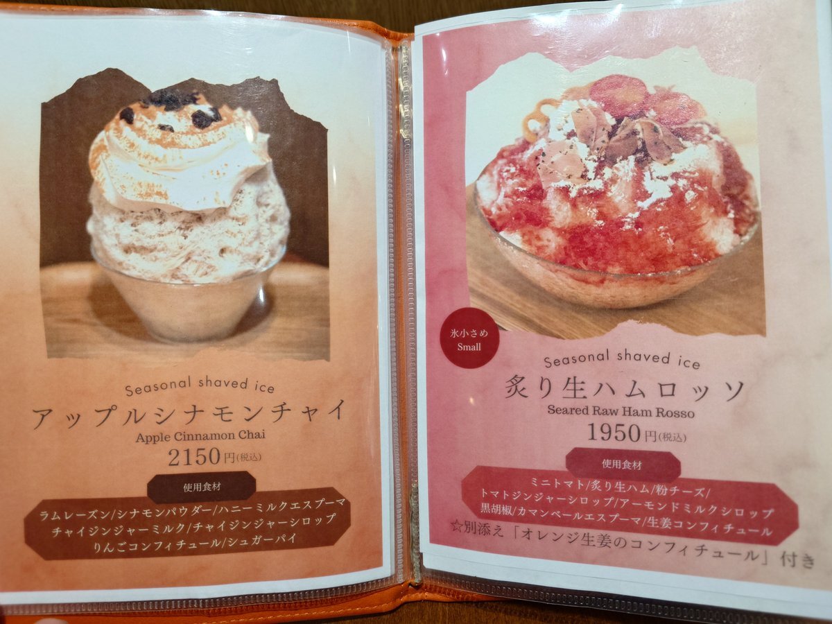 お酒も入って水分が欲しくなったので、久々の銀座のジンジャーでかき氷。アップルシナモンチャイ。 チャイだからなのか甘みはそこまで無くて控えめ。でも中にはパイやリンゴのジャム?が入っていて最後までしっかり楽しめる。美味でした。 #写メ #食べ物 #茄子P飯テロ部 #アイマスP食いしん坊隊 pic.x.com/56JIucIE4l