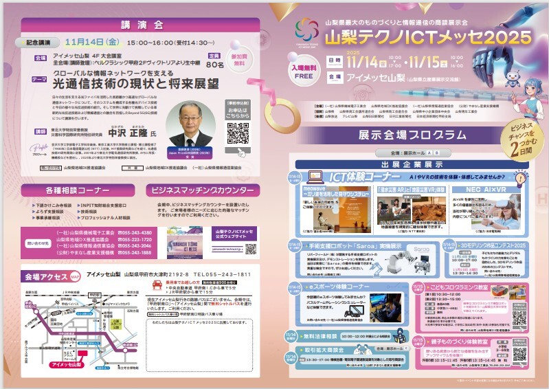 2025年11月14(金), 15(土) 【山梨テクノICTメッセ2025】 会場 アイメッセ山梨 にて開催。 NPO法人 山梨情報通信研究所様の出展ブース内にて、何点か展示します。 よろしくお願いします。 #山梨テクノICTメッセ2025 #アイメッセ山梨 #山梨情報通信研究所 #NPO法人山梨情報通信研究所 pic.x.com/CwqxVFxpMS