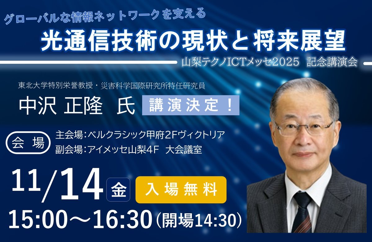 💻 ICTメッセ記念講演会 日々の生活に不可欠なインターネット📱 📡 それを支えるグローバルな通信ネットワークの現状と将来展望、世界に先駆け挑戦している6G通信技術とは!? 東北大学特別栄誉教授の中沢正隆氏による講演会を開催します🎙️