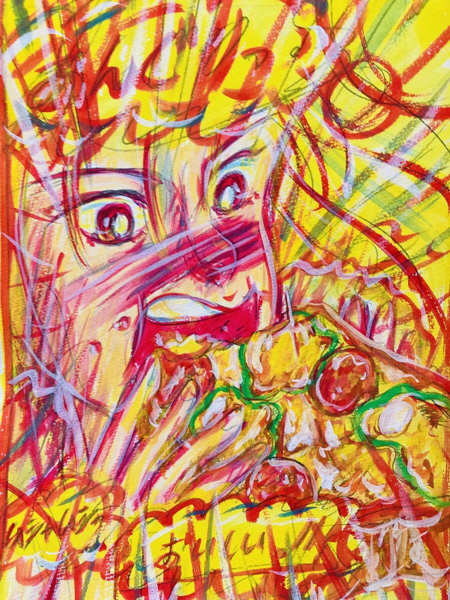 漫画「春夏秋冬。-僕達のストーリー。-」ピザトーストを食べるアカネ。 # #漫画 #絵画 #イラスト #漫画アート #マンガート #現代美術 #現代アート #アウトサイダーアート #水彩画 pic.x.com/mTwClhadg2