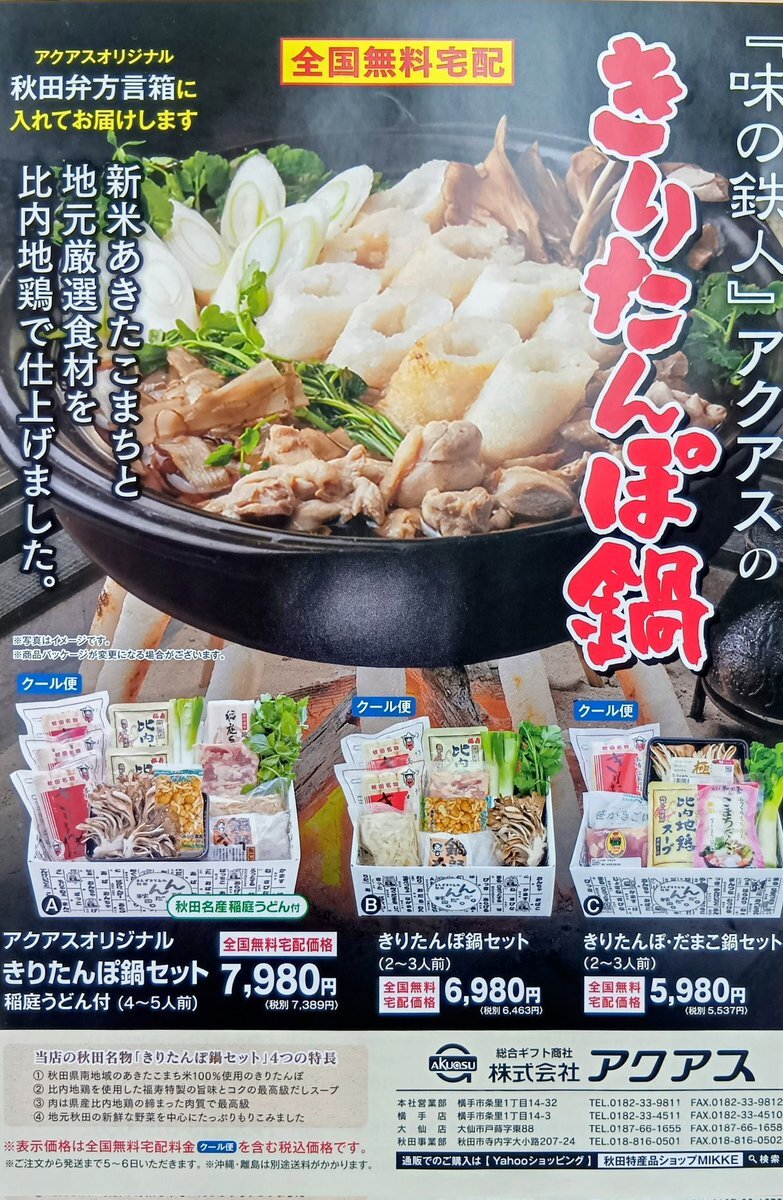 今年のきりたんぽのチラシが出来上がりました😍毎年大変好評頂いていてリピーターの方も多くいらっしゃいます☺️御歳暮だけじゃなく、内祝や仏事にも選ばれています✨️ #横手市 #アクアス横手店 #きりたんぽ pic.x.com/NYKUSVQV78