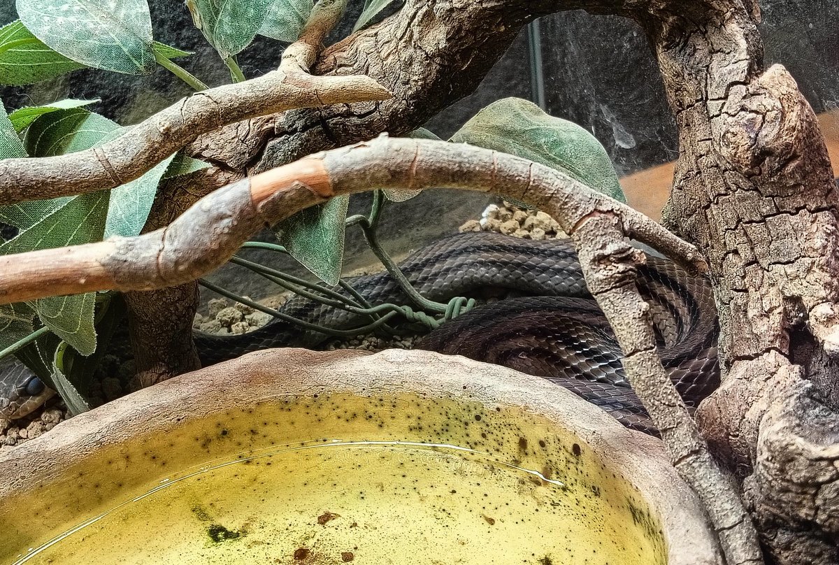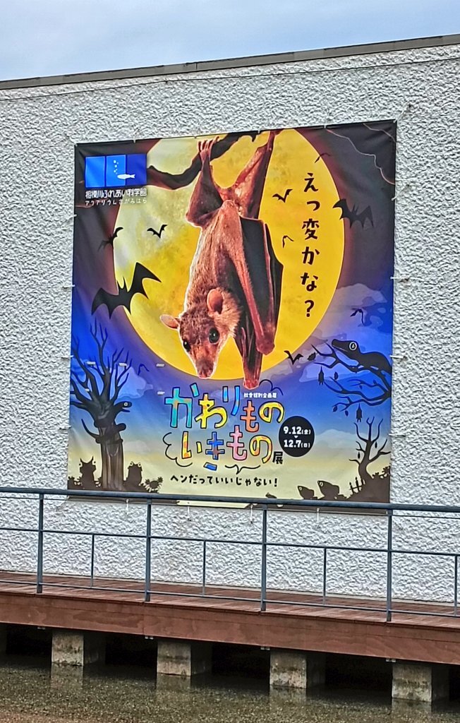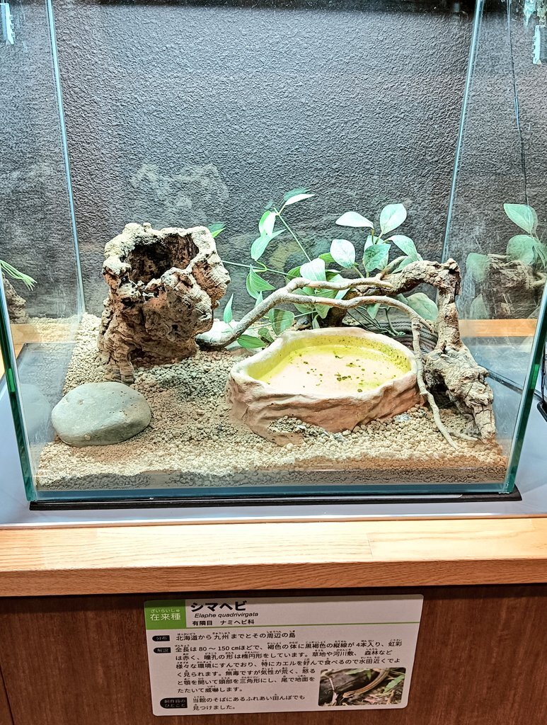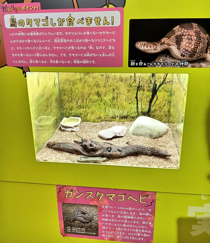 ガンスタマゴヘビ かなり小さい個体だったので、ウズラの卵でも難しそうな…?😅 エジプトルーセットオオコウモリ いるのは分かったけど、ほぼ見えなかったかな〜、日中だし仕方ないよね…😓 #かわりものいきもの展 #アクアリウムさがみはら pic.x.com/UXEbqMBFJS