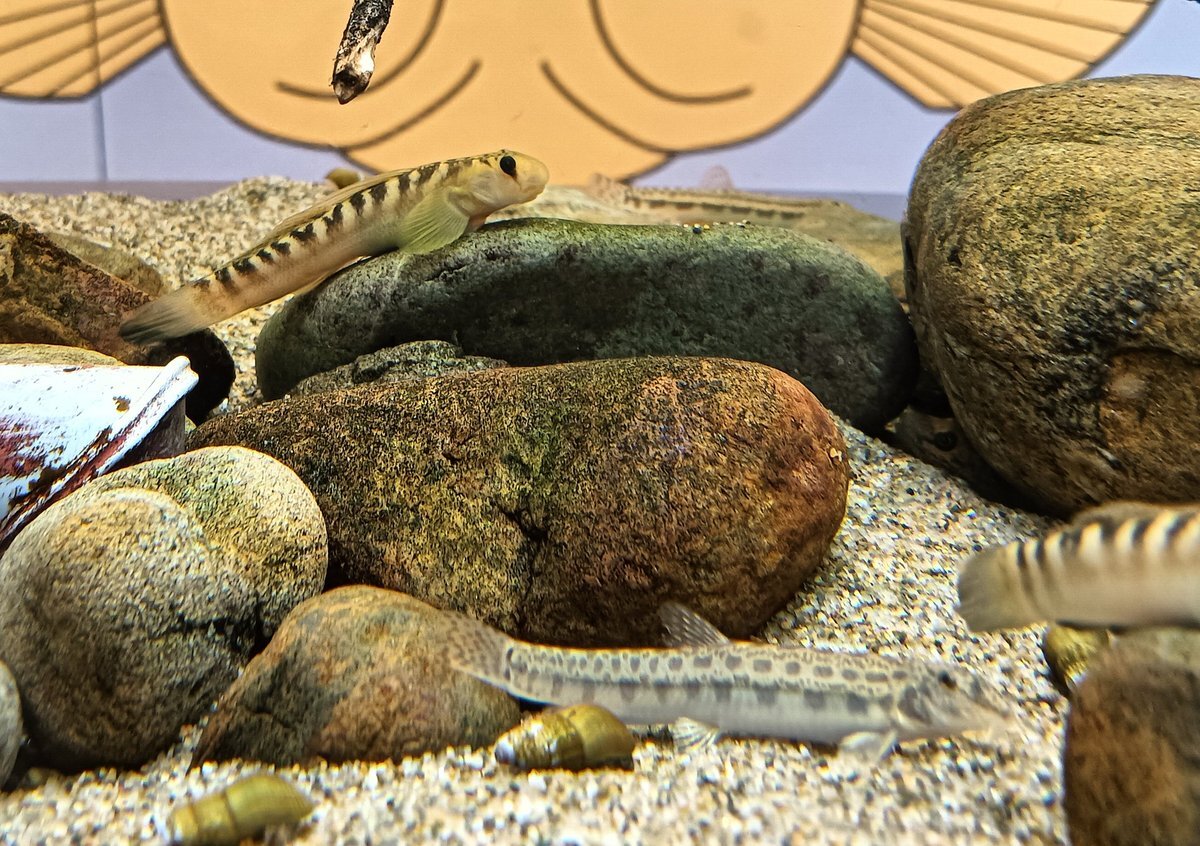 ミナミトビハゼ 人気のマッドスキッパー!₍₍◞( ˙ ⁸˙ )◟₎₎ ⁽⁽◝( ˙ ⁸˙ )◜⁾⁾ キンチャクガニ TVでもよく見かけるチアリーダー🦀〜😁 #かわりものいきもの展 #アクアリウムさがみはら pic.x.com/EFRh9JC60R