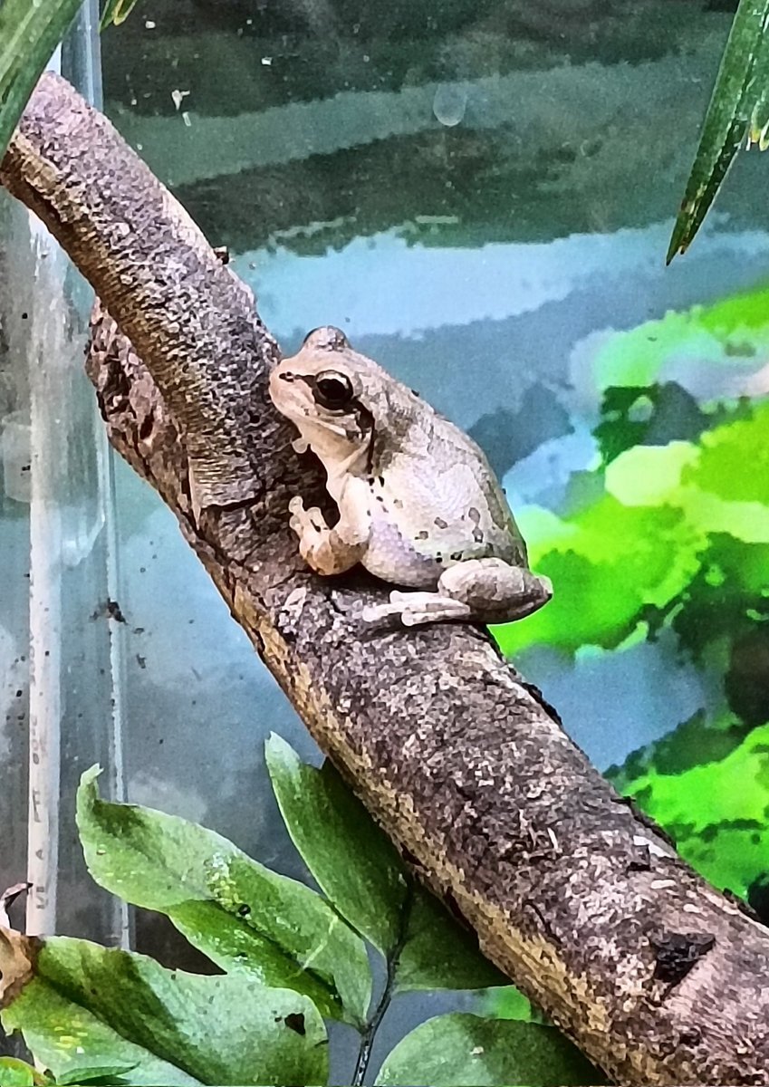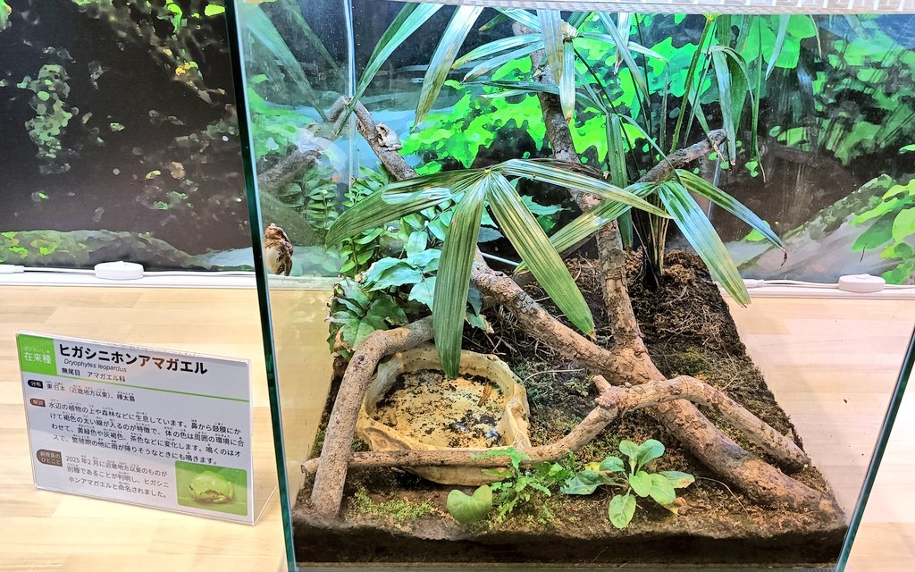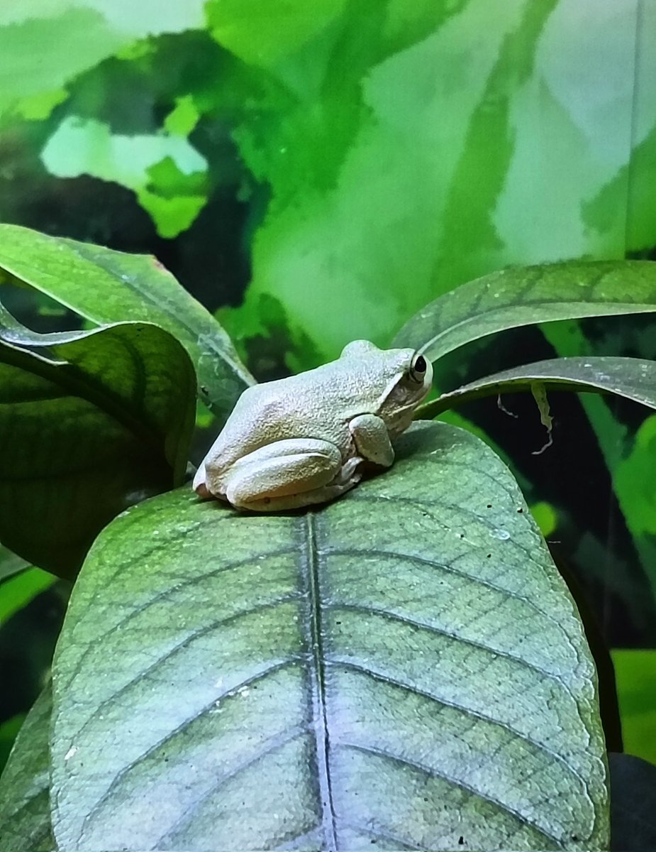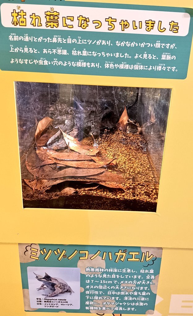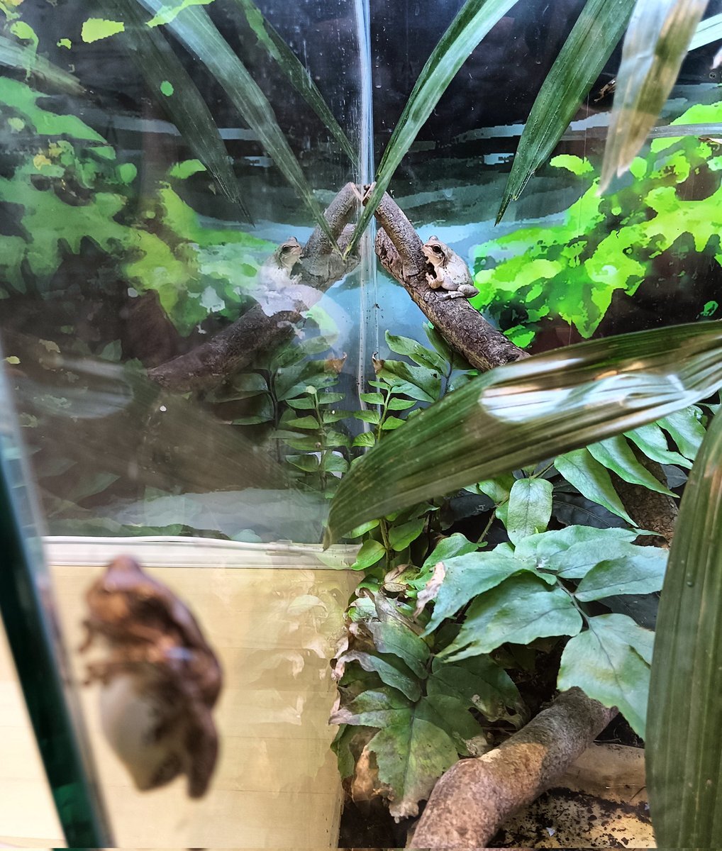 ミツヅノコノハガエル 撮りやすい良いアングルで待機してくれてました〜🐸 マダガスカルヘラオヤモリ 一方こちらは、撮りにくい木の裏に…🦎 #かわりものいきもの展 #アクアリウムさがみはら pic.x.com/IH3kaq3PSU