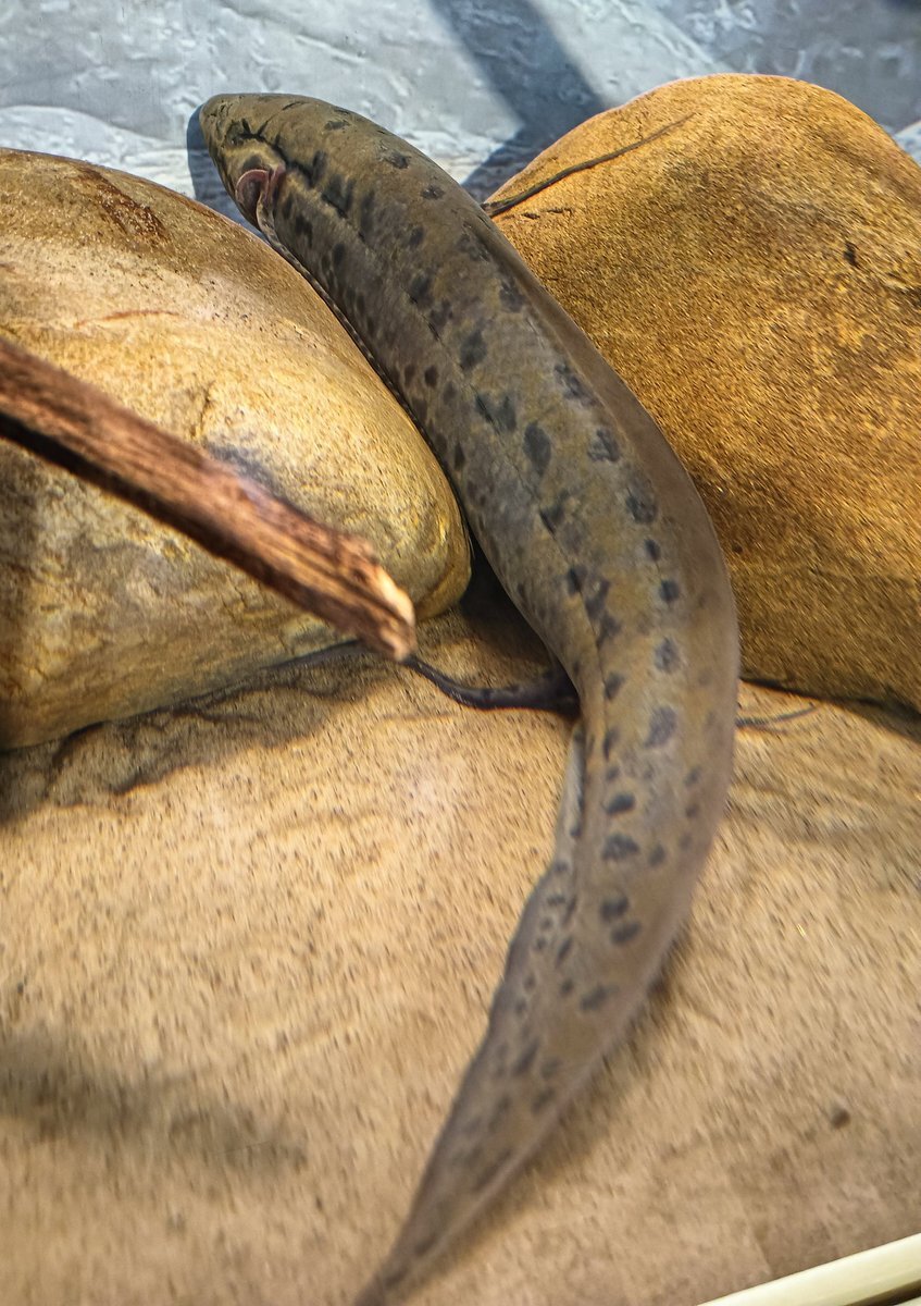 サカサナマズ 撮ろうとしたら逆さじゃなくふつーに泳いでてね……😅 プロトプテルス・アネクテンス みんな大好き!カワイイ肺魚!😍 #かわりものいきもの展 #アクアリウムさがみはら pic.x.com/jjoYkIP3RW