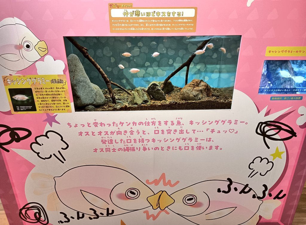ブラインドケーブカラシン 洞窟の暗闇に適応して目が退化…🙈 キッシンググラミー ♂ × ♂で💋・・・(ケンカ) #かわりものいきもの展 #アクアリウムさがみはら pic.x.com/Dk8ZWOfrI1