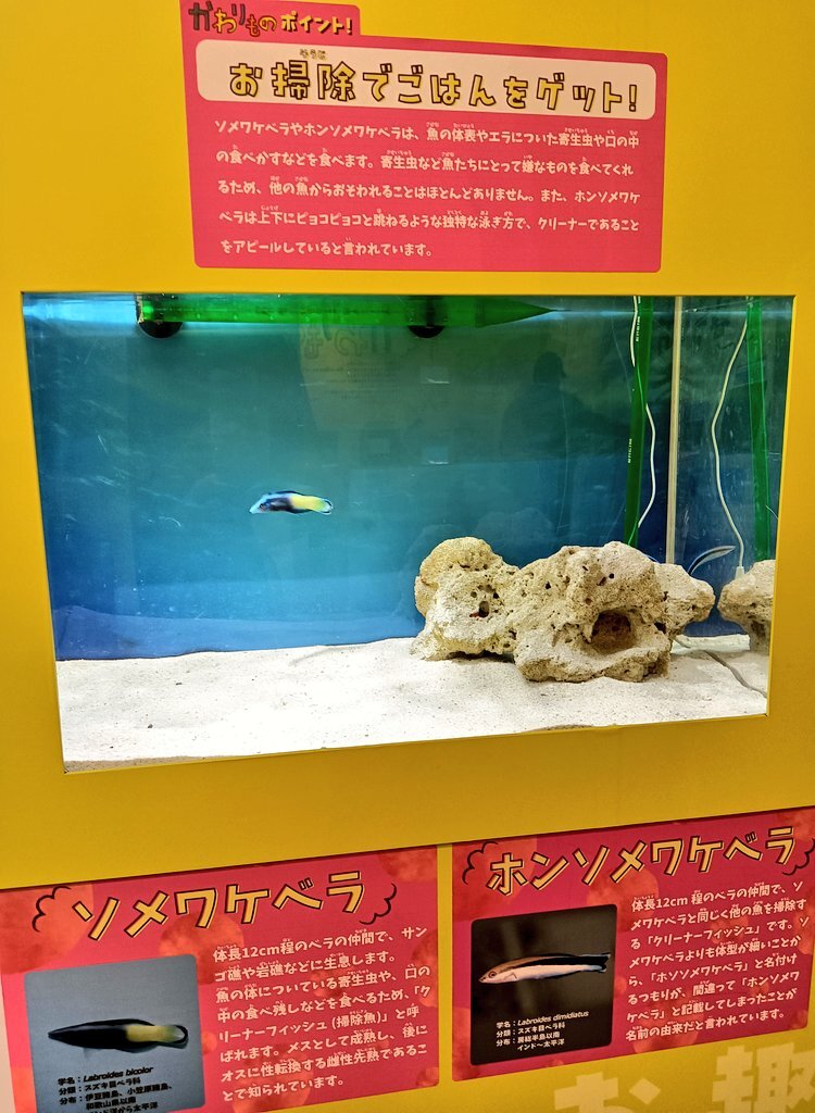 ソメワケベラ ホンソメワケベラ 本当はホソソメワケベラだったらしいね!(学名付ける時にありがちな読み違い、エゾ→エドみたいなw) フリソデエビ ・・・ちょっと見つけられなかった…😓 ガラ・ルファ ご存知、ドクターフィッシュ! #かわりものいきもの展 #アクアリウムさがみはら pic.x.com/qITm6O1ida
