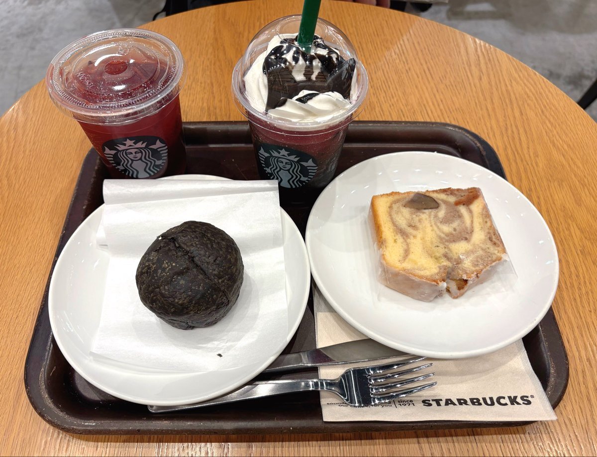 今日はマイナカードの更新で家族とお出かけした帰りにスタバへ🚗💨 #アサイーベリーフラペチーノ®にするかブラックver. にするか迷ったけどブラックver.にした🖤 #ハロウィンチョコandベリーデニッシュ も一緒に🐈⬛🍓 家族の #アサイーベリーゆずシトラスandティー も少しもらって満足😆💕 #スタバ pic.x.com/qIASQZRttA x.com/starbucks_j/st…