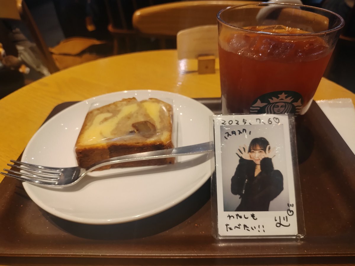 今日はキラーチューンとタンバリンチェキ会でした😌。りりちゃんはあいにくお休みでしたが、昨日約束したアサイーゆずシトラスティー🥤飲んできた。栗パウンドケーキも添えて🌰。ゆず&シトラスが爽やかな味わいにしてる。アサイとのバランスも良き良き😙。 #アサイーベリーゆずシトラスandティー pic.x.com/acJaA1nwTC