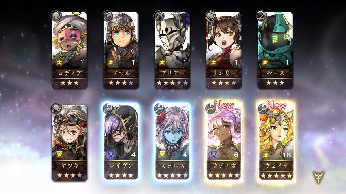 英明と双命を引いた結果…… 英明ではトゥーヴァAS、双命ではメリッサと殿下のNEWスタイルでした タイトルにいるキャラに全くかすりもしませんでしたがNEWだったので良しです クラグホーンはもう諦めました😌 #アナザーエデン pic.x.com/uuPb8iM1ao