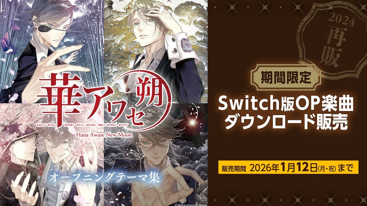 \ 配信販売開始 / 【再販/期間限定配信決定】 『華アワセ 朔』&『スチームプリズン』シリーズの関連楽曲が #アニメイトゲームス にて期間限定配信! 移植版のOP楽曲フル版を手に入れる機会をお見逃しなく! 🎴華アワセ 朔 -蛟編-『夜映ノ華』 🎴華アワセ 朔 -姫空木編-『仮初のAgape』 pic.x.com/s3XIdrjL8V