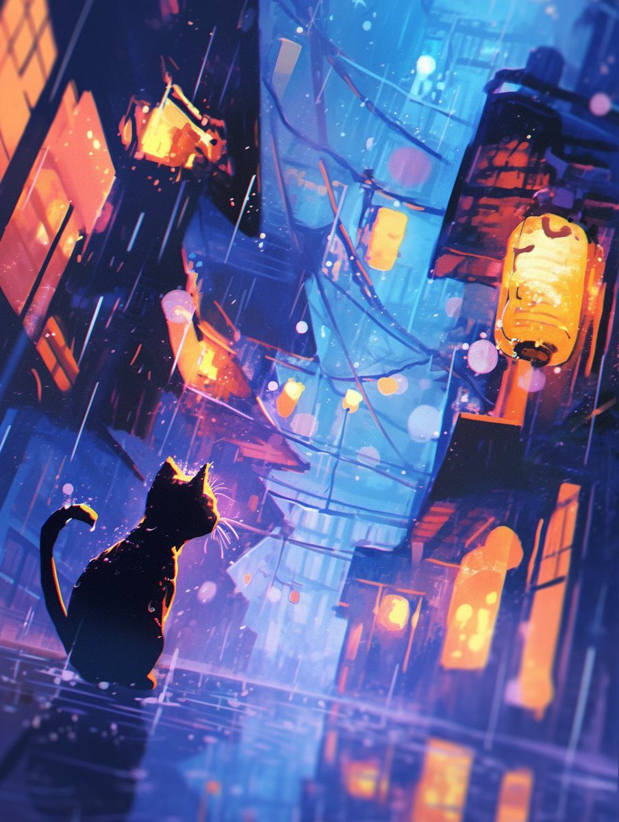《雨灯の下で、夜を聴く猫》 「雨が奏でる静けさの中、 きみだけが夜の声を聴いていた。」 #詠影 #AIアート #黒猫 #雨の街 #夜景アート #アニメイラスト #AIart #AnimeArt #StreetNight #RainyCity #BlackCat #LanternGlow #DigitalIllustration pic.x.com/300xEtCgZH