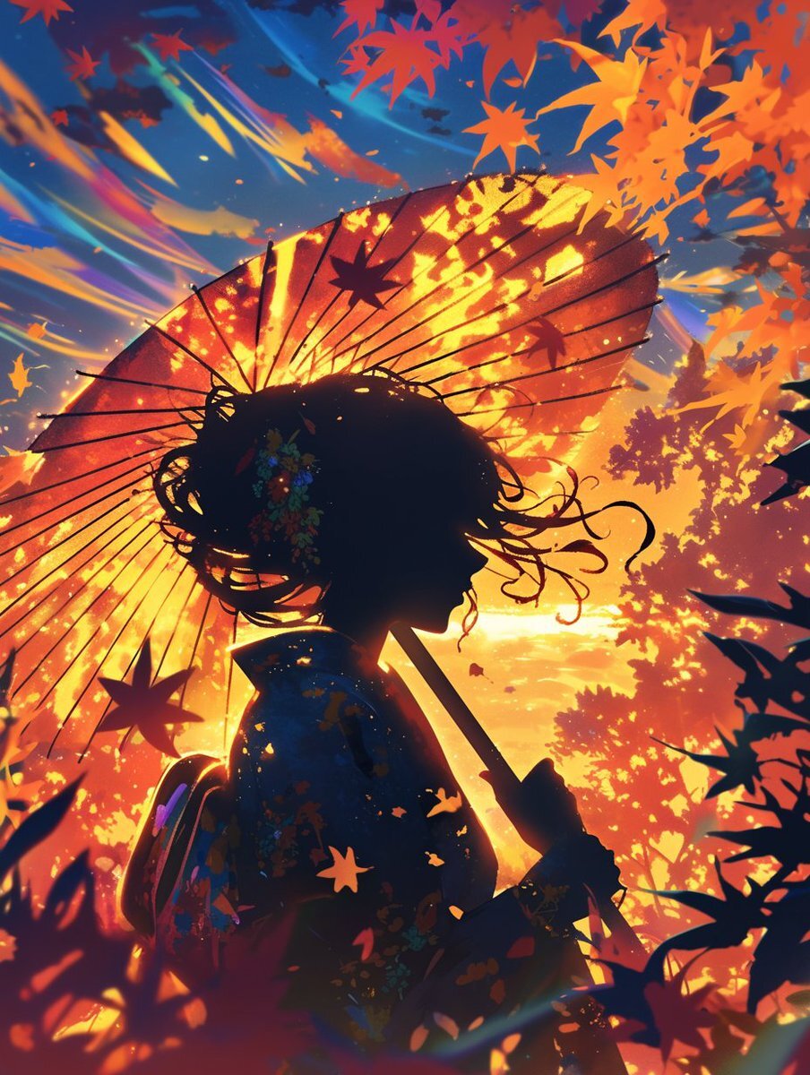 《黄昏に染まる、紅葉の面影》 「夕映えが落とした影に、 過ぎゆく季節の音だけが滲んでいた。」 #詠影 #AIアート #秋の絵 #和風イラスト #紅葉 #夕焼けアート #アニメイラスト #AIart #AnimeArt #AutumnVibes #KimonoArt #SunsetArt #DigitalIllustration pic.x.com/kHtFJZ6M3d
