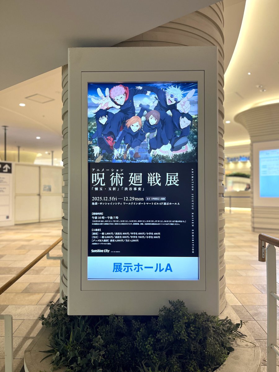 / #アニメ呪術廻戦展 池袋駅・サンシャインシティにて 広告掲出中!📺✨ \ サンシャインビジョンや 館内デジタルサイネージにて広告掲載中! ぜひお立ち寄りの際はご覧ください👀 ■掲出期間:~12月29日(月)まで #呪術廻戦 #Jujutsukaisen #懐玉・玉折 #渋谷事変 pic.x.com/gOcxbjNzf8