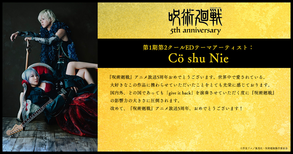返信先:@oO0Eve0Oo他2人◤ アニメ 『#呪術廻戦』 5周年お祝いコメント到着!! ◢ 5周年を記念して 第1期第2クールEDテーマアーティスト Cö shu Nie さんより お祝いコメントが到着!! #jujutsukaisen #アニメ呪術廻戦5周年 #coshunie pic.x.com/iT5ba4G4wG