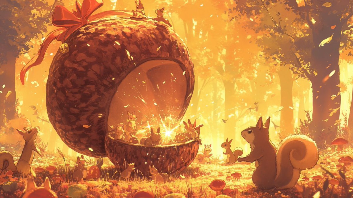 大きなどんぐりの中に、ひらり。 光とともに現れたのは、森からの小さなサプライズ🎁✨ 笑顔と一緒に届く秋の贈りものを、どうぞお受け取りください♪ #AIart #アニメ風 #秋の動物 #Midjourney #フリー素材 #木の実と森のことづて pic.x.com/YTnaaoaB0W