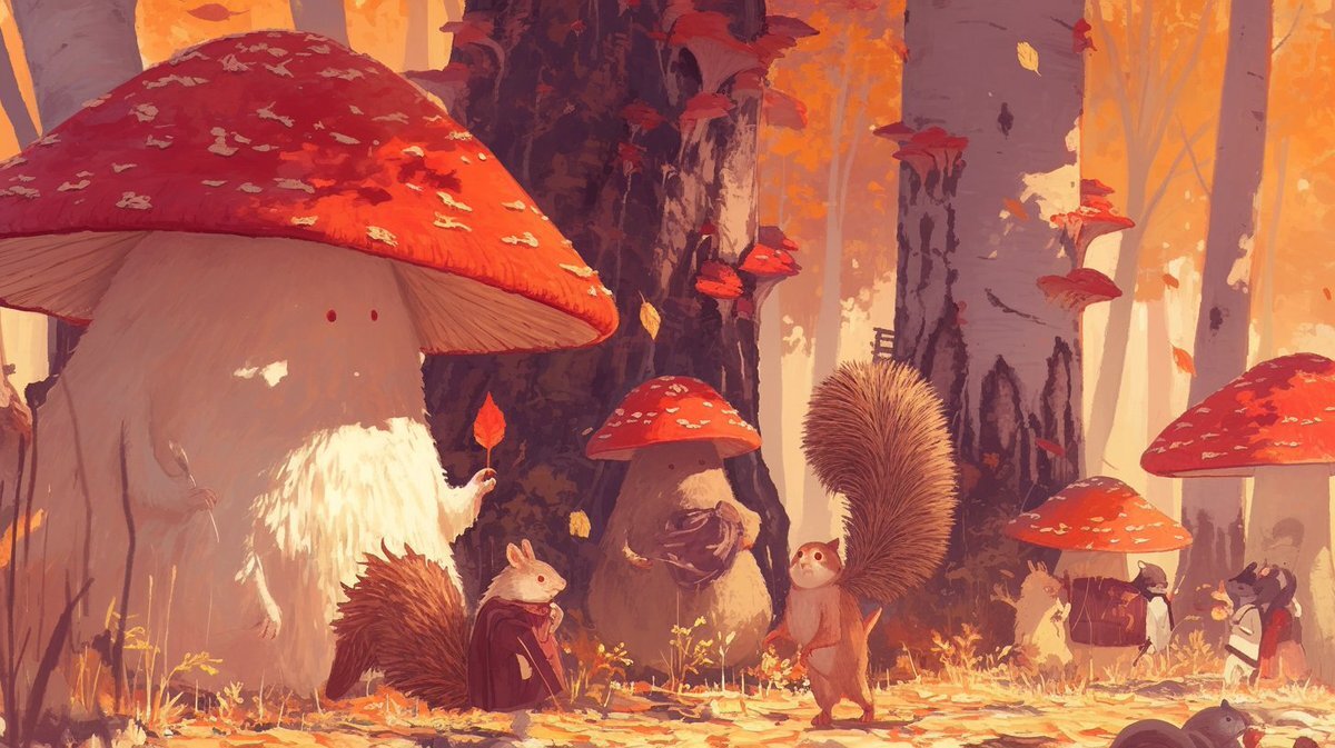 きのこ広場で、今日はおしゃべり会🍄 ふかふか帽子のきのこさんに、リスさんもうさぎさんも大集合! 秋風にゆれる葉っぱといっしょに、笑い声がふわり… #AIart #アニメ風 #秋の動物 #Midjourney #フリー素材 #木の実と森のことづて pic.x.com/3szCM2PUcJ