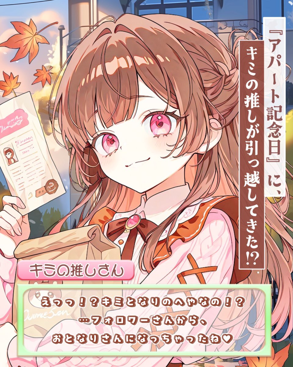 ˚.✧ 🍁 フリー素材 🍁 ✧. ˚ ⋰ 11月6日は #アパート記念日 🏘️✨ ⋱ いいね💗&RT🔄両方で使用 🆗❣️ シュミレーションゲーム風素材 🎮🫧 #Vtuber素材 #おはようVtuber素材 #Vライバー素材 #IRIAM素材 #Vtuberフリー素材 #むにフリー素材 💫11月素材も販売中💫munipop.booth.pm