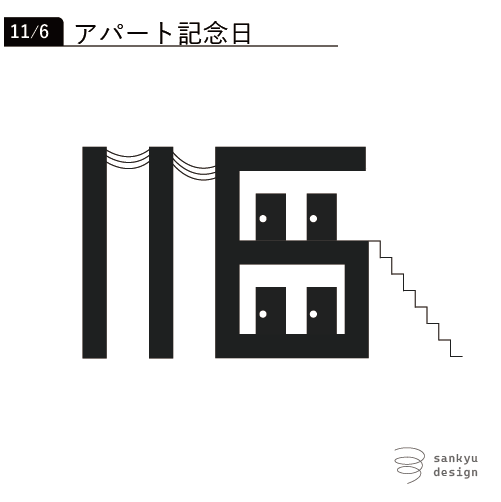 本日は『アパート記念日』! 11/6の「6」を使ってアパート、「1」を電柱に見立てて少しレトロな雰囲気なロゴを作りました。 #毎日ロゴ #アパート記念日 #ロゴデザイン pic.x.com/ZU52uFyUFP