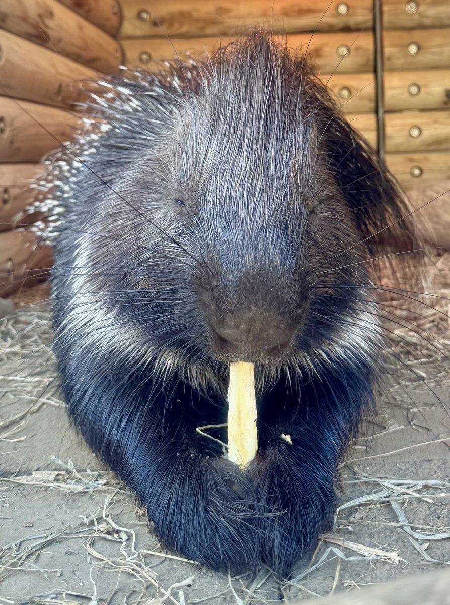 本日のアフリカタテガミヤマアラシのあんみつ 竹筒にはペレットが入っています #旭山動物園 #asahiyamazoo #アフリカタテガミヤマアラシ #あんみつ pic.x.com/laU4Bi6RsR