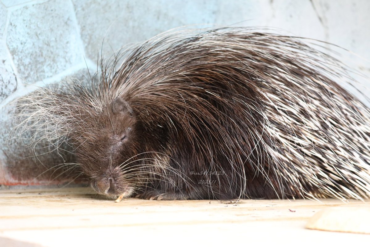 にちようのひらいてた❔ おきていた😊あんにんちゃん🎵 で、おはようございます🍀 2025/11/23 9:30すぎ #アンニン #アフリカタテガミヤマアラシ #上野動物園 とちゅうでおめめが とじちゃう😴💤 みたいでした🥰 pic.x.com/q1NckuIBNx