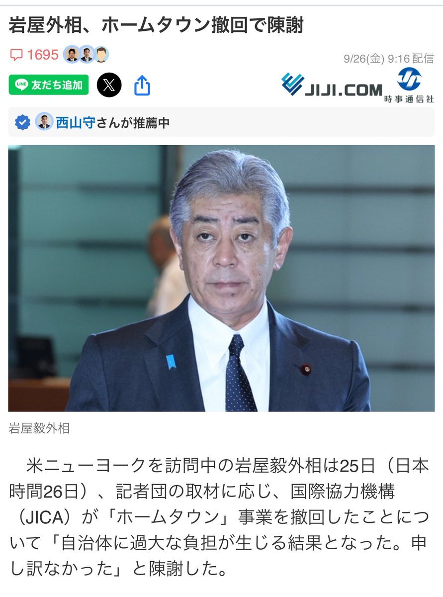‼️撤回きたーーーーー‼️ 🚨「ホームタウン」撤回へ🚨 「移民促進」誤情報で抗議殺到、異例の転換 (…と思ったが) 【外務省幹部】 『ネット上で勝利と受け止められたら困る』 👉撤回後も交流促進支援へ(え?) [朝日新聞] japannewsnavi.com/219086-2/