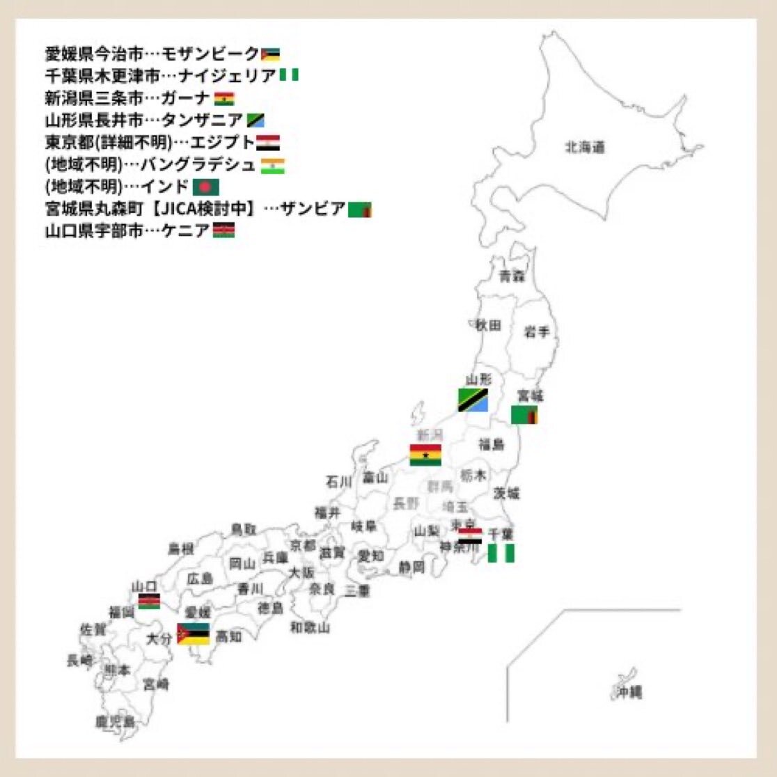 🇯🇵日本を守りたい皆さま🇯🇵 🗾地図【更新しました】 ・宮城県丸森町…ザンビア 【JICAアフリカホームタウン参加検討中】 ・山口県宇部市…ケニア 情報提供をありがとうございます🙇‍♀️