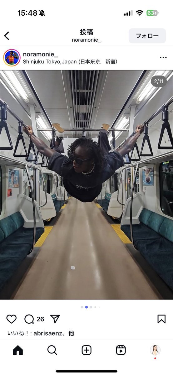 世界陸上のカメルーン代表選手がインスタに載せてる写真、完全に迷惑インバウンドそのもの。 炎上必至だろ、と思ってコメント欄見たら外国人からの賞賛コメントが多くて眩暈がした😵💫 国を背負うアスリートでこれなんだから一般外国人がマナーを守らないのは当たり前な気がしてきたよ🥲
