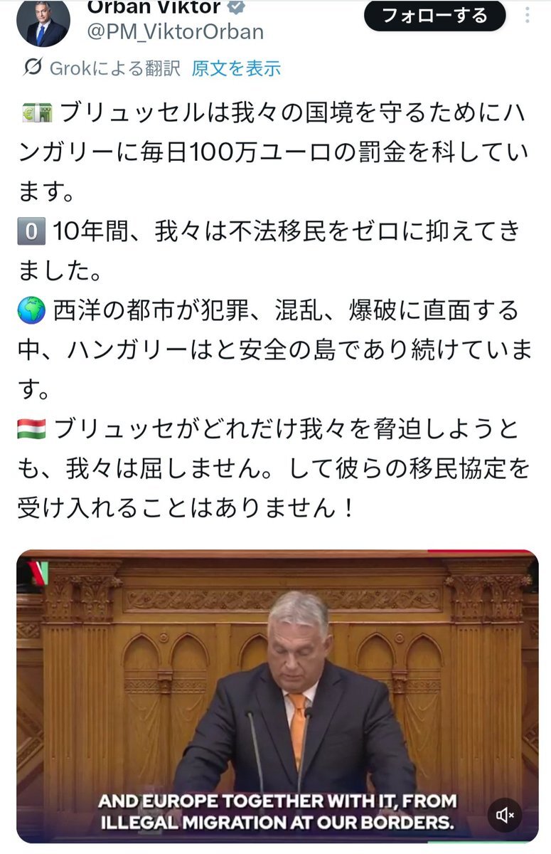 ハンガリーオルバン首相こそ国のリーダーのあるべき姿だろ!日本も周りが移民の受け入れを脅されても、屈してはダメだ! #移民政策断固反対 #多文化共生の強制にNO #アフリカホームタウン計画断固反対 pic.x.com/O5kCqdM2Jo x.com/PM_ViktorOrban…