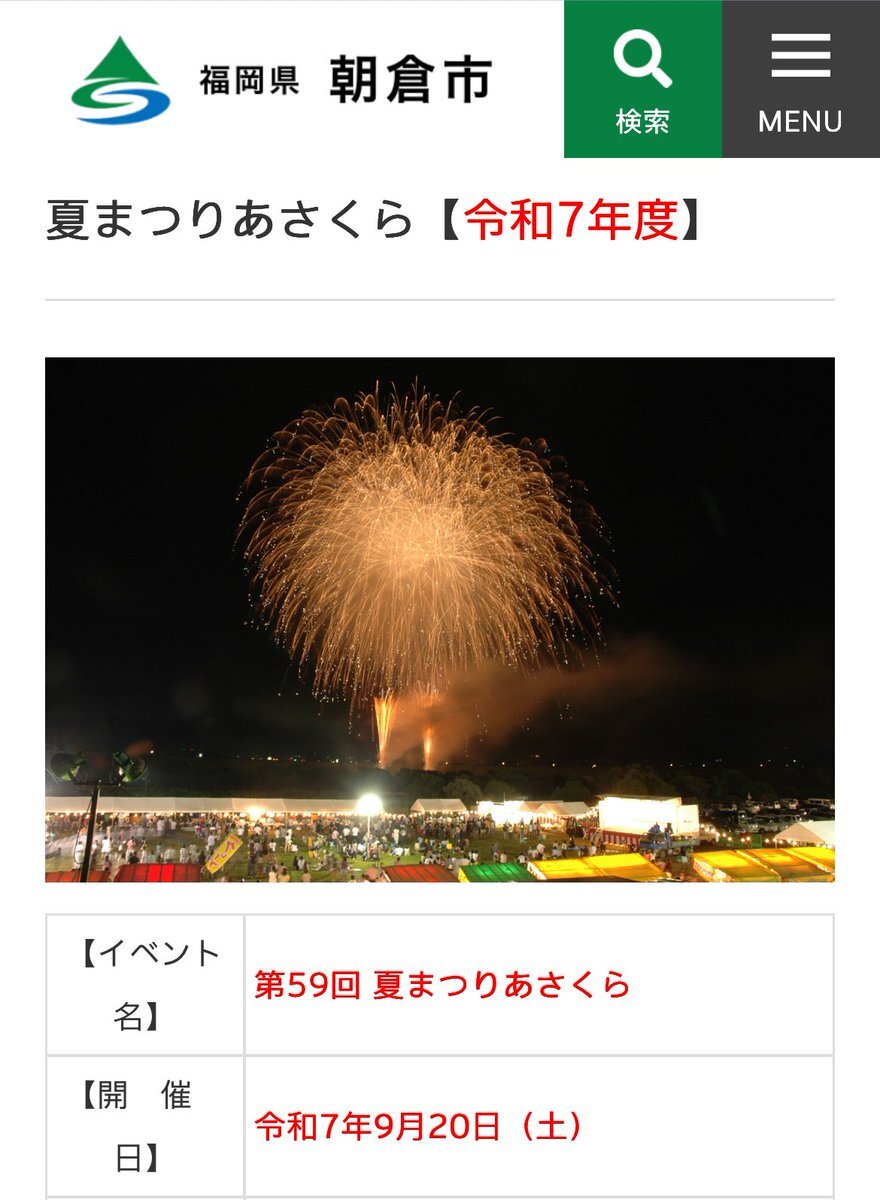 自分の町が突然危機に襲われた時にすぐに連携できるのが田舎の強みです。 9月20日に地元で花火大会が行われます。 そこで、先輩がマイクもって周知徹底すると言ってくれてます。 正直、花火大会とかやってる場合じゃないかもしれませんが、絶好の機会だし朝倉市民には知る権利があります。 #朝倉市 x.com/yalomon/status…