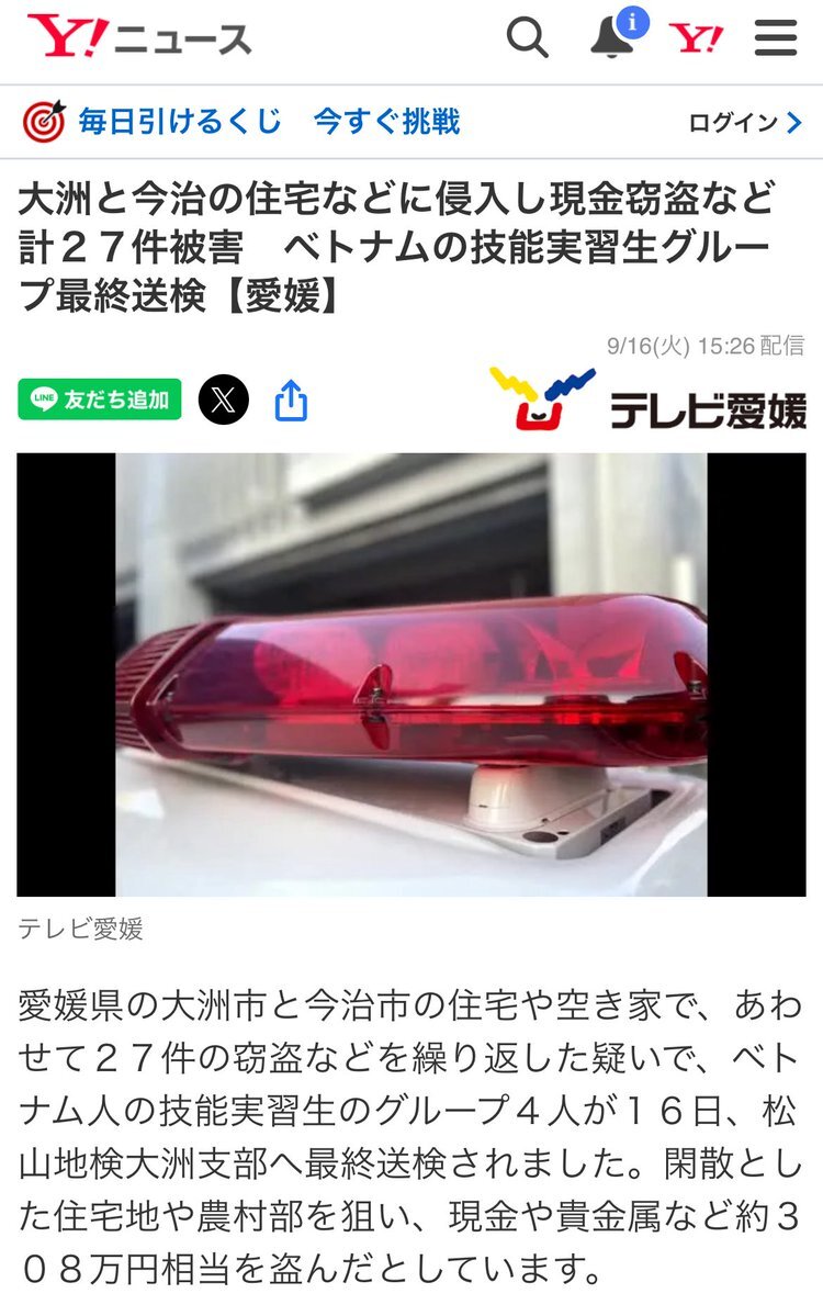 外国人労働者や留学生を受け入れるってことは、一定数こーゆー人も入ってくるってことなんよ 一部の人は移民を増やしてメリットがあるのかもしれないけど、国民にはデメリットしかない #外国人労働者・留学生の厳格化 #アフリカ・ホームタウン計画白紙撤回 #JICA解体 #日本政府解体 x.com/penpen_popnews…