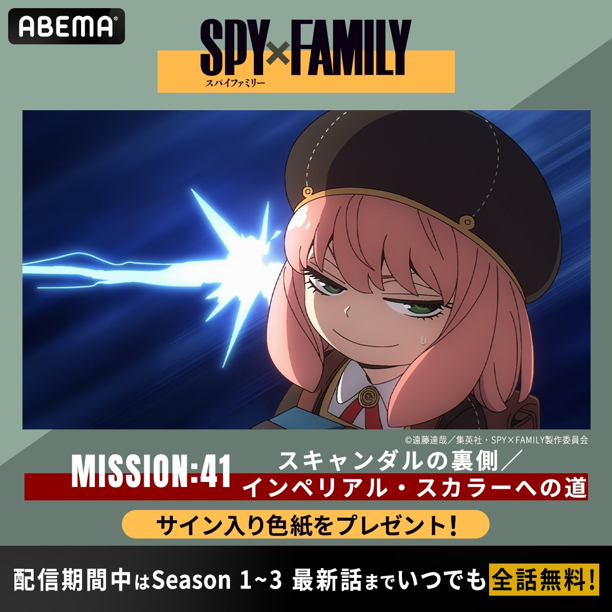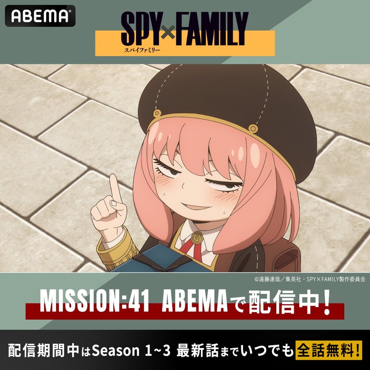📺アベマにて最新話配信中📺 最新話:MISSION:41 視聴はこちら🔽 abema.go.link/gZ2eq ※登録無しで視聴可能 放送期間中アベマにて、 Season 1〜3 最新話まで いつでも全話無料配信中👏 #SPY_FAMILY #スパイファミリー #アベマでスパイファミリー全話無料 @Anime_ABEMA pic.x.com/2qr2SYZCrL