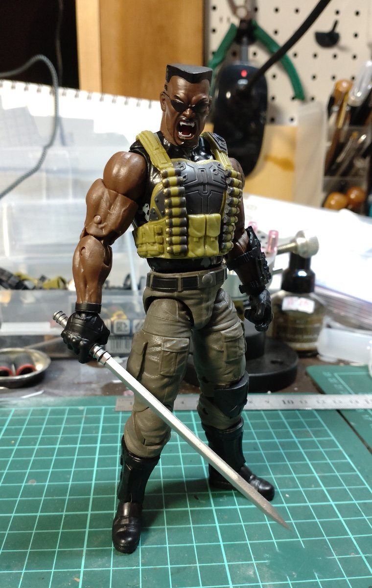 素体 マインドレスワンビルドのブレイド 頭部 マンシングビルドのブレイド 手首 アクションフォースのハンドパーツセット それぞれ必要に応じた加工をしています。 #アメトイカスタム #マーベルレジェンド pic.x.com/Z2hLeb2yoX x.com/spiritsboy/sta…