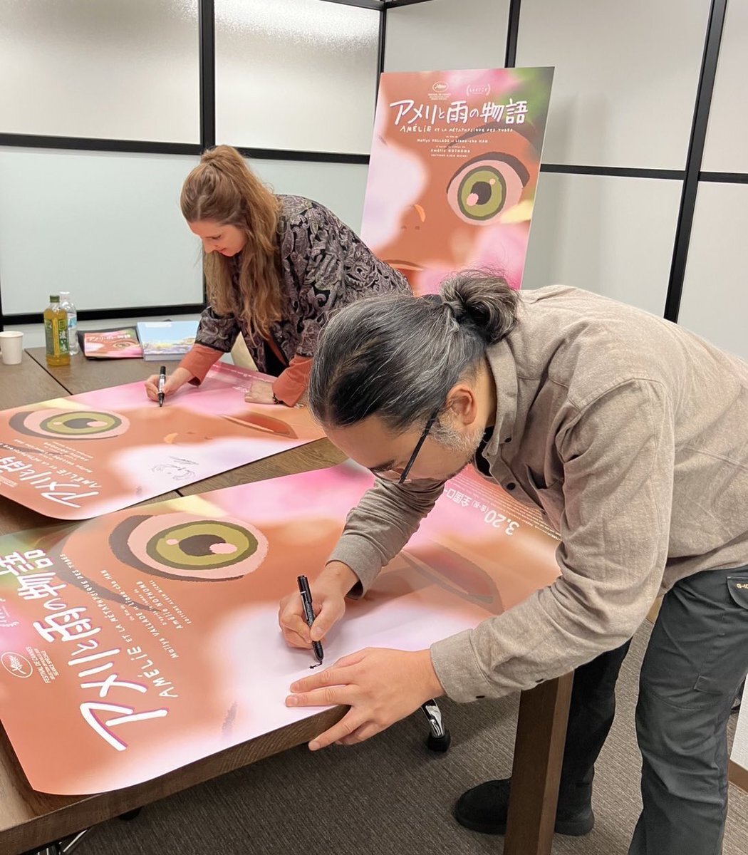 ⋱ 🌸 『#アメリと雨の物語』 🌸⋰ 本日は取材デー!マイリス・ヴァラード監督&リアン=チョー・ハン監督にたくさんの質問にお答えいただきました。 合間には、日本版ビジュアルに素敵なテキスト&イラストサインも✍️お披露目をお楽しみに! pic.x.com/IHlIoqBqHb