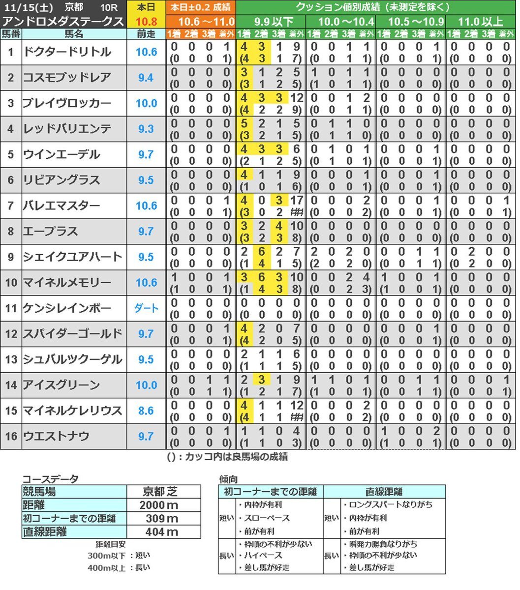 11/15(土) 京都10R #アンドロメダステークス ◎9.シェイクユアハート ○6 ▲4 △1.7.12.14 クッション値10.0以上で好成績な9.シェイクユアハートから狙ってみます 人気薄からは4.レッドバリエンテ、長期休養で嫌われているかもですが調教は動けている感じありますので一発あっても pic.x.com/GSnJKhrGTH