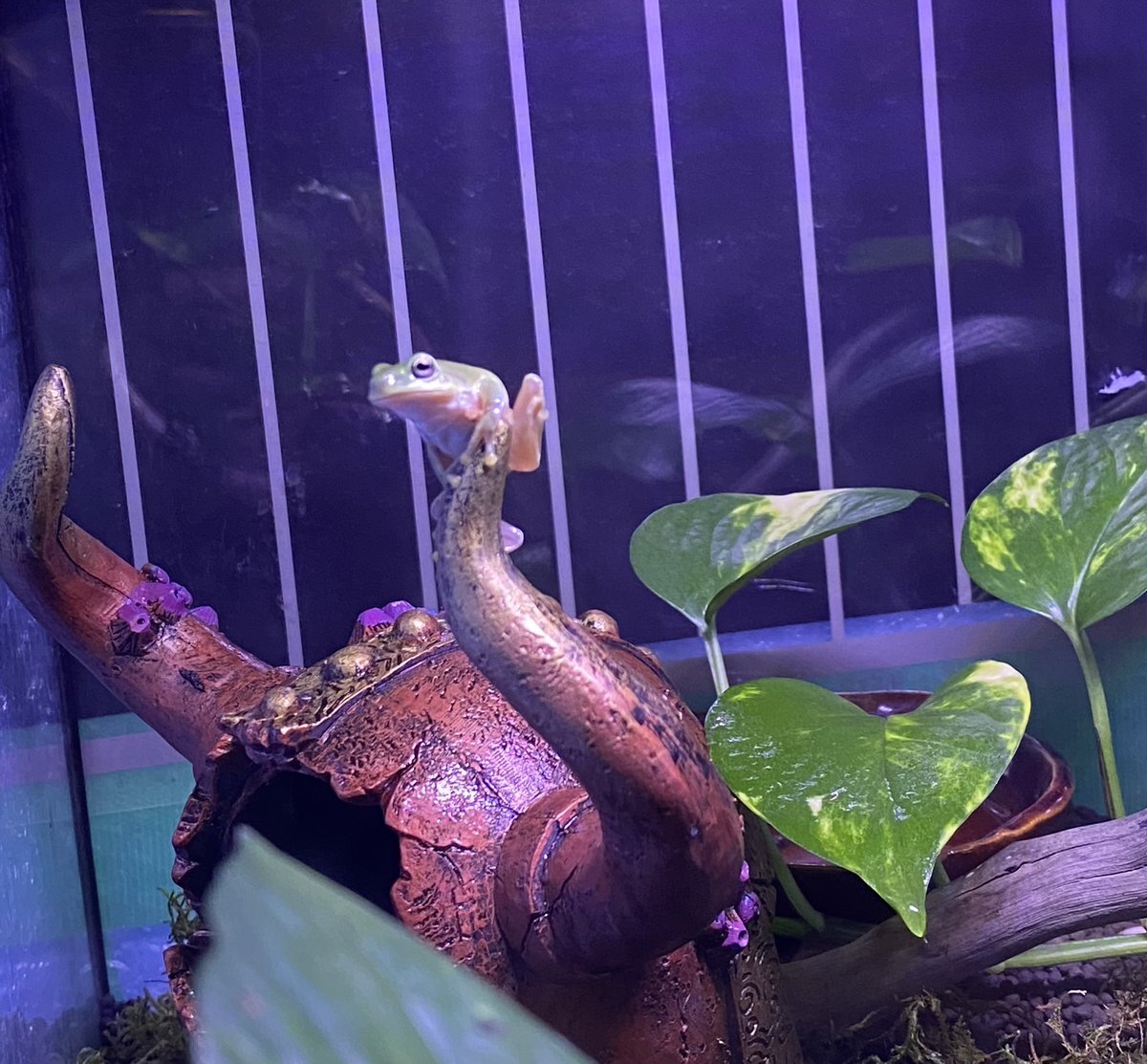自然界にいたら絶対ポトスに見えるよ、ポルくん頑張ってるね🐸🐸 #イエアメカエル #成長の記録 #擬態 #ポトス pic.x.com/hqTSmixure