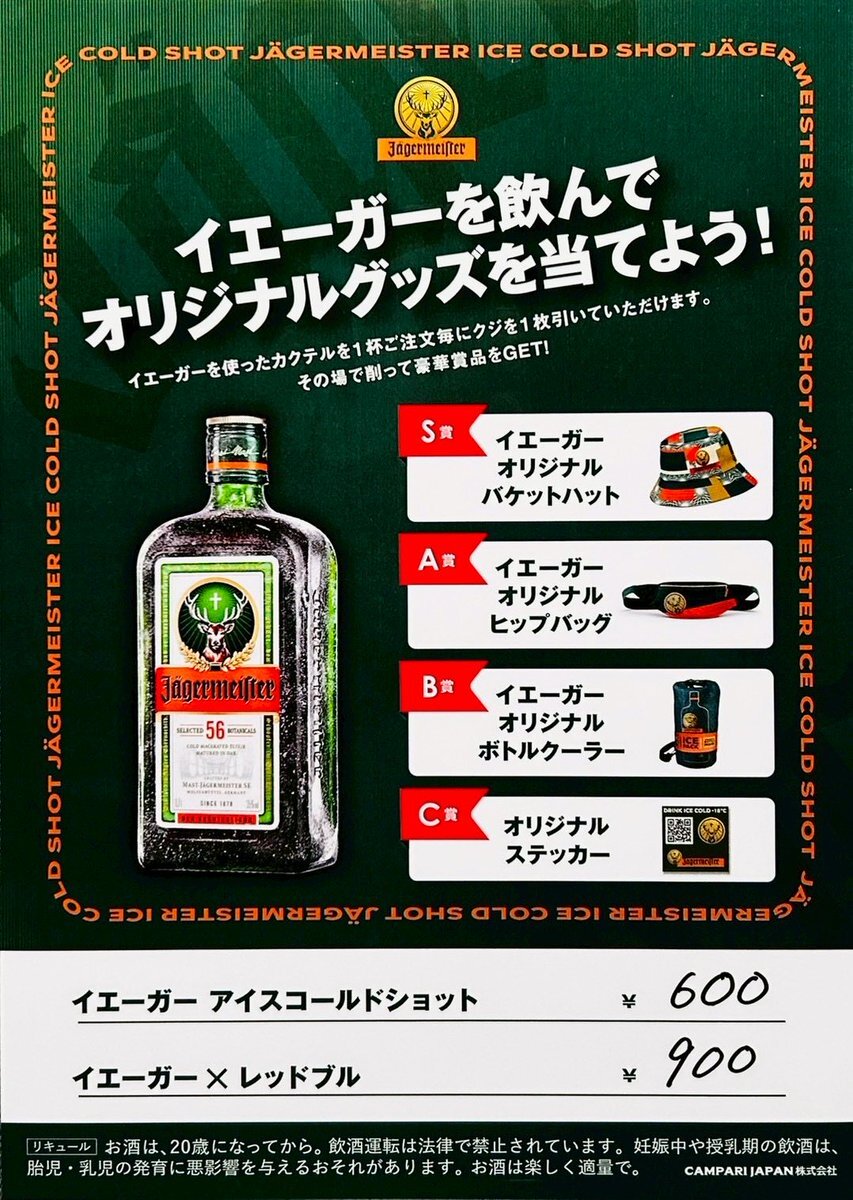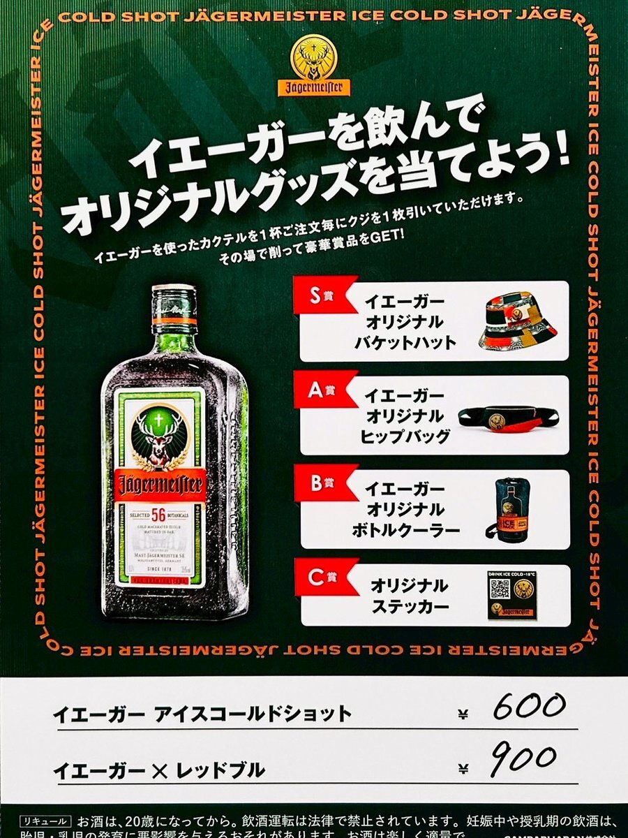 こんにちは🕺 #Link本八幡店 です🫶🏼 今月の #キャンペーンドリンク🍹 #イエーガースクラッチくじ キャンペーン開催中🎉✨ 期間中、1杯ご注文毎にくじが引けます‼️ 定番の #ショット や #イエーガーカクテル 🥳 楽しく飲んで🤡 #オリジナルグッズ を当てよう‼️ #ダーツバー #プールバー #本八幡 pic.x.com/JfHnflzPTy