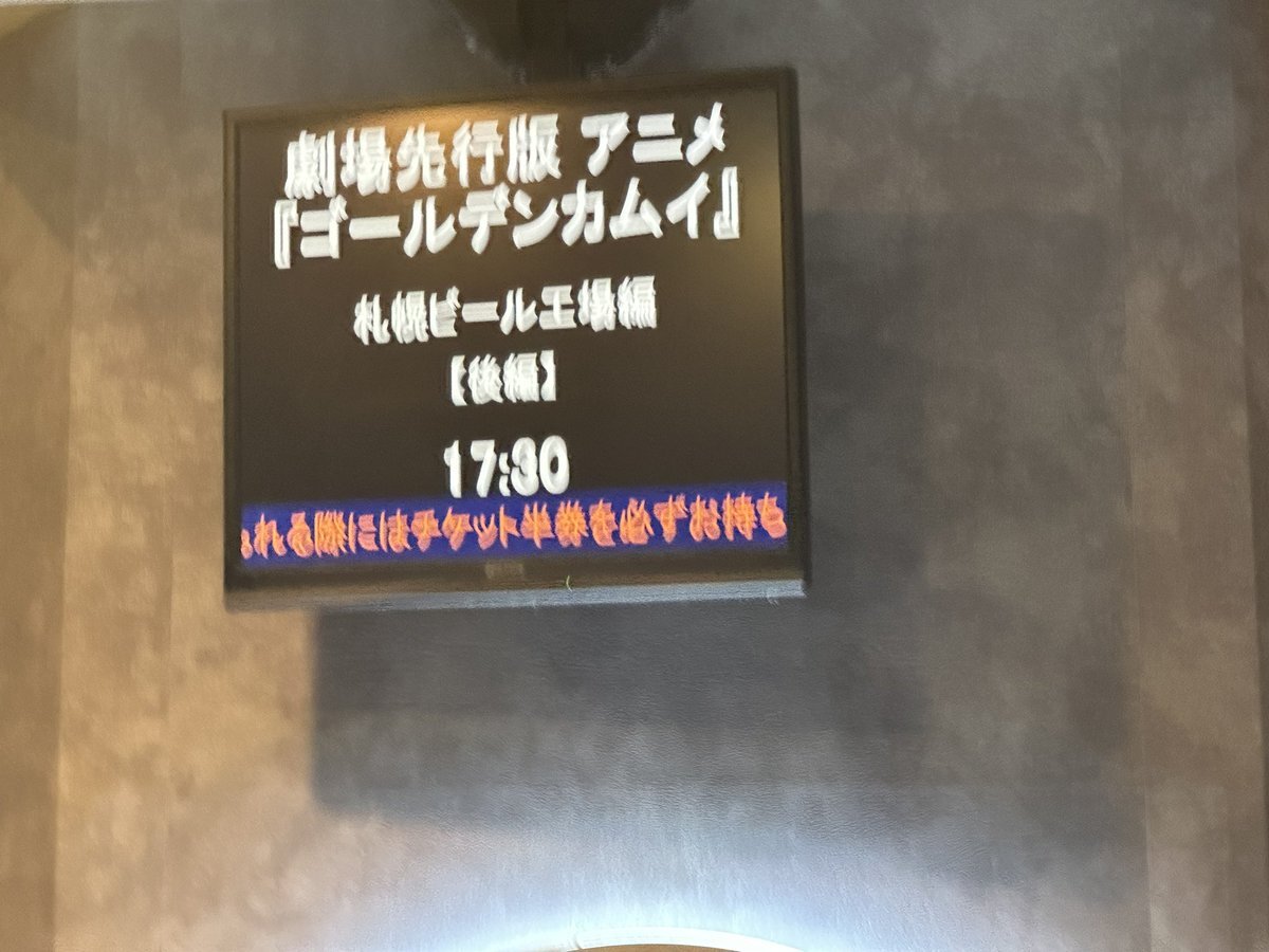 イオンシネマ茨木で『劇場先行版 アニメ『ゴールデンカムイ』札幌ビール工場編【後編】』を観ました〜✌️😁前編はごちゃごちゃした印象でしたが、後編はしんみりしちゃいました…😢💦💦💦 #ゴールデンカムイ札幌ビール工場編 #野田サトル #イオンシネマ茨木 pic.x.com/Gmjw6ByUtM