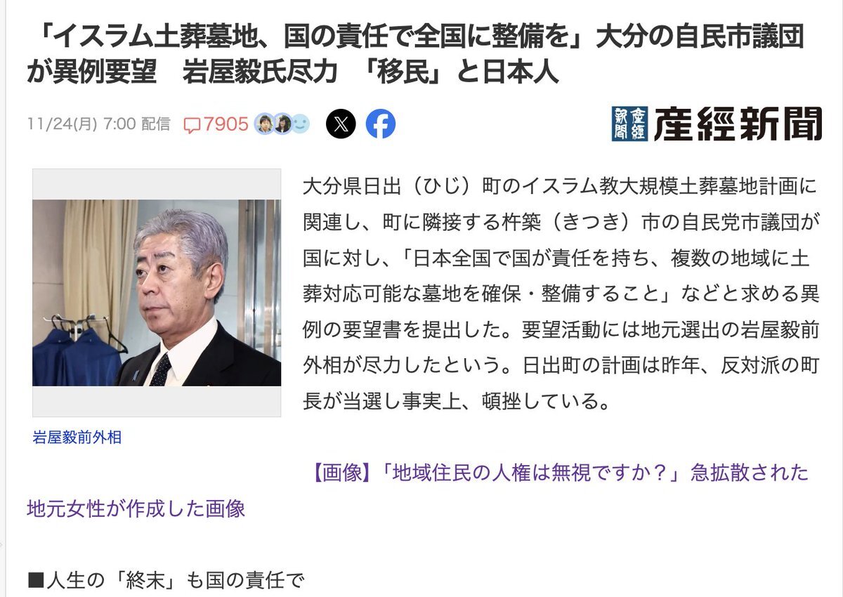 イスラム土葬墓地問題は、岩屋前外相の意向というより、大分の杵築市の自民党市議団が岩屋氏にさらに手を尽くすように仕向けたということだと思う。 lohas-school.net/wp/2025/12/01/… #イスラムとは共生不可能 #イスラム #イスラム教 #土葬墓地反対 #土葬墓地断固反対 pic.x.com/omu0Kw1nK9